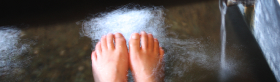 足湯は辰口温泉総湯「里山の湯」と温泉街を結ぶ散策路の途中にあり、散策路からは辰口温泉の街並みや豊かな緑など、風情漂う景色を楽しむことができます。歩き疲れた足には効果抜群です。