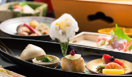 本館の金澤懐石 日本海、白山麓、加賀平野など地元の旬材ふんだんに使った自慢のお料理です。