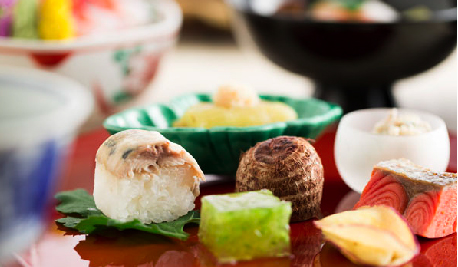 新館鳳凰の鳳凰懐石 海の幸、山の幸を贅沢に使い華やかな盛り付けもお楽しみいただけます。