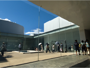 ガラス張りの円形の建築でも有名な、全国的に人気の現代アート美術館です。無料スペースと有料の展示スペースがあります。