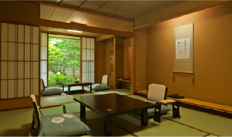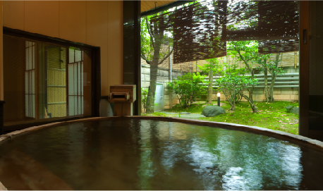 しっとりとした和風情緒をかもしだすお部屋は日本建築の技と心を生かした安らぎの空間。庭園を眺めながら、ゆったりと露天風呂で天然温泉をお愉しみいただけるお部屋もございます。