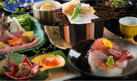 当館のお料理は地元の食材を厳選し、一品一品のお料理を最高の状態でお召し上がり頂けます。目にも舌にも心から味わう「美味の旋律」を愉しんでいただけるよう、尽くしてまいります。