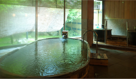 桧の香りも新しく漂う「白寿の湯」。 日本庭園を眺めながらお楽しみください。